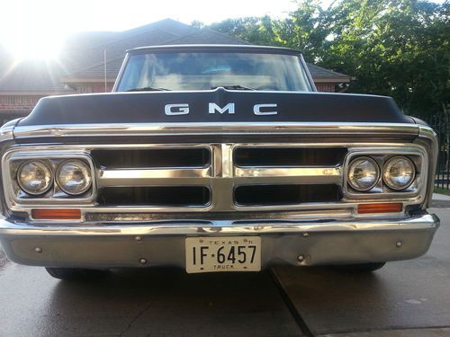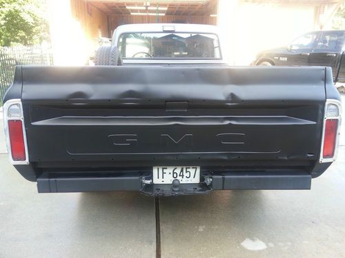 1971 GMC Truck with hand milled pine slats in bed. This truck is in good running condition and attracts car enthusiast everywhere you go. Straight pipes so you will hear her before she arrives! Please e-mail any questions you may have. The only issue (shown in picture) is on one side near the front bumper. The tailgate is not perfect but then again it is the original. Drives side window crank works although it is not the original crank as whoever owned this truck before was pretty handy. This toy has got to go as my new one is on the way! Always garaged unless she comes out for a wash or quick trip to a show. NO RESERVE.