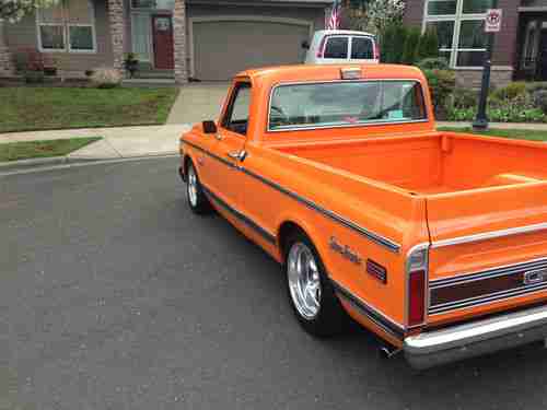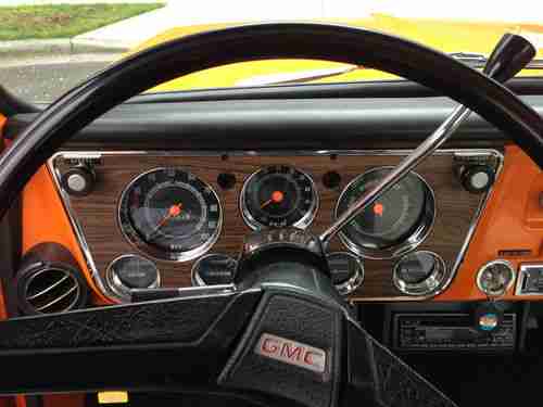 If your looking for a truck that has never been molested or cut up this is the truck for you. This 1972 GMC Sierra Grande Half-Ton Shortbed has been lowered with spindles and coils in the front and lowering leaf springs in the rear. Its approximatley a 5-7 static drop. Flow master Exhaust with 17" American Racing Wheels wrapped in GoodYear rubber. Other than those modifications this truck is completely stock. Has Factory AC and blows cold. As you can tell from the photos the truck has been meticulously maintained and it pretty much speaks for itself..