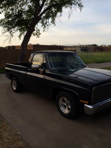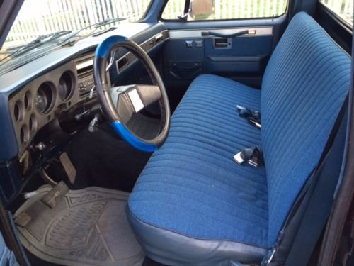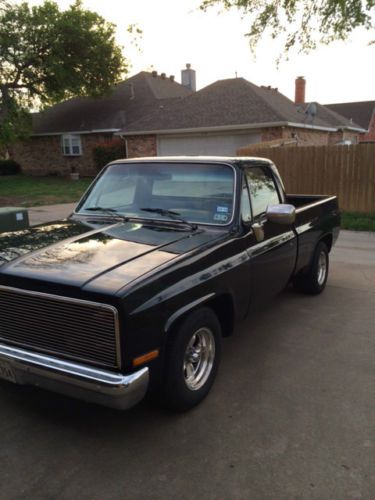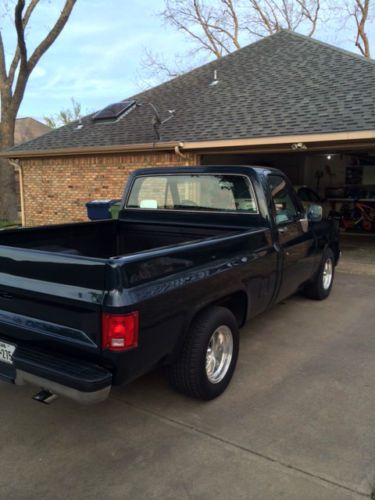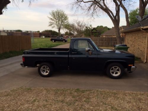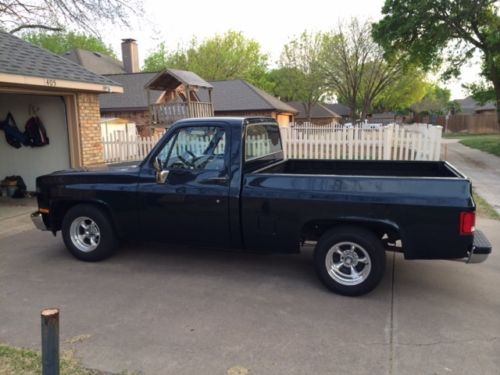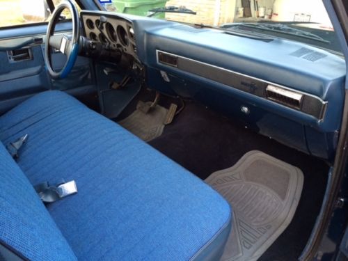 1985 GMC- Short wide bed. Power Steering, Power Brakes, Power Windows, Power door locks, 350 engine (486 lift cam), Edelbrock Carburetor, Edelbrock intake, Hooker Headers, Dual Exhaust w/ Flow Master Mufflers, New radiator, 700R4 Transmission (Rebuilt w/ B&M shift kit & Corvette Servo), Suspension Lowered with 3 inch drop spindles on front, 4 inch shackles on rear, New Paint, New Interior, New Brakes on Front and Rear, Am/Fm CD player. A/C is ice cold. Looks and Drives great. Clear & Clean blue title.