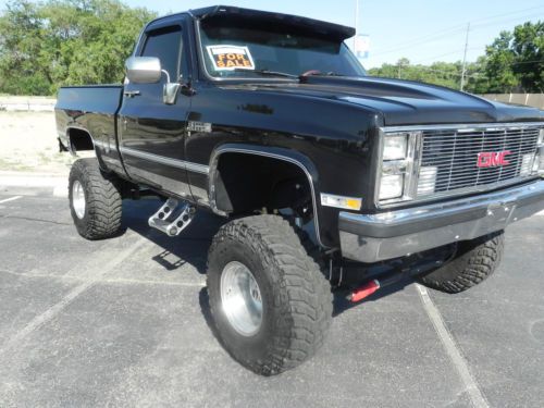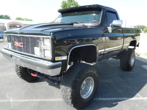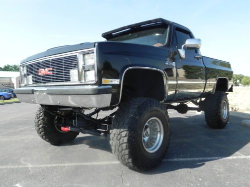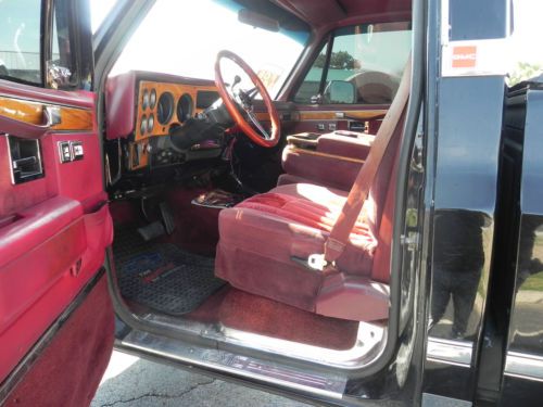 REG CAB, SHORT BED PICKUP WITH A 350 FUEL INJECTED/5.7 V8(ONLY YEAR THIS TRUCK CAME IN FUEL INJECTED), W/ OVERDRIVE TRANSMISSION WITH SHIFT KIT.. NOW THIS BAD BOY IS RUST FREE WITH REALLY NICE PAINT(BLACKCHERRY), INTERIOR LOOKS GREAT WITH NO ISSUES. HAS A/C, PW STEERING, PW BRAKES, PW WINDOWS, PW DOOR LOCKS, CRUISE CONTROL, WOOD SPORT GRANT WHEEL, TILT STEERING, REAR SLIDING WINDOW, COWL HOOD, ALUMINUM AIR CLEANER AND VALVE COVERS, DUAL FUEL TANKS, CHROME MOLDING, AND BY THE WAY EVERYTHING WORKS!! INCLUDING THE REVERSE LIGHTS!! HAS A NEW 8' LIFT W/ CROSSOVER STEERING, DUAL EXHAUST, BLACK TANNEAU COVER, BED LINER, KENWOOD CD PLAYER IPOD CONNECTIONS, WITH AMP AND NOS SUBWOOFER, TINTED GLASS. NEW CUSTOM GRILL HEADLIGHTS, LUND VISOR, BUMPERS, AND MORE..... TRUCK RUNS AND DRIVES GREAT WITHOUT ANY ISSUES.. YOU COULD DRIVE HOME IN IT!! THIS GMC IS ONE OF THE CLEANEST OUT THERE!! I KNOW I AM GOING TO REGRET SELLING MY GMC!! I CAN HELP ARRAGE SHIPPING IF NEEDED AT BUYERS EXPENSE!! FOR MORE INFORMATION CALL ME OR TEXT ME FIVE-ZERO-FIVE SIX-EIGHT-ONE- TWO-SEVEN-FIVE-SEVEN. HAPPY BIDDING AND THANKS FOR YOUR INTEREST!! |
