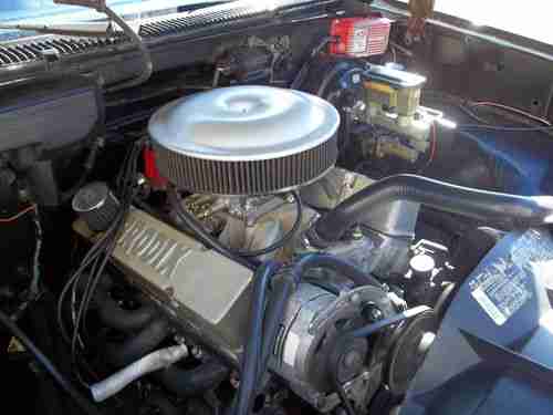 It has a freshly built 350 engine with a smooth shifting 5-speed manual transmission behind it. The engine has just had about $2500 spent on the top end less then 7 months ago, it has brodix heads and valve cover gaskets on it, the intake is eldelbrock and the less then year old carburetor is a eldelbrock 650. The distributor is a HEI. The truck has a 6AL box on it that is not currently hooked up. It also has a pretty big cam in the truck, but I do not know the specs on it. Engine is about 10-1/10.5-1 compression, estimated between 350 and 375hp. Truck is very strong. Also has headers dual exhaust, it leaves for a very nice sound. The transmission has a new clutch slave cylinder, master cylinder, and new clutch line. Clutch is very strong and all the gears are very smooth. Truck will run 80mph @ 2500 rpm. I have been driving this truck roughly 80 miles to work then 80 home. I also love to get in it and ride around on the weekends.