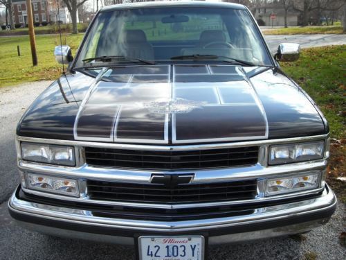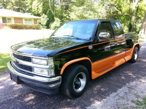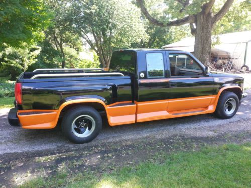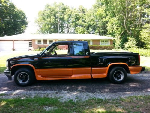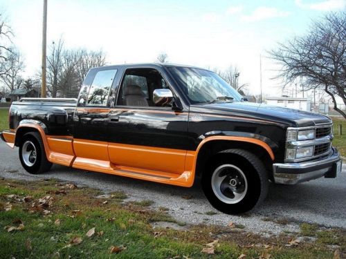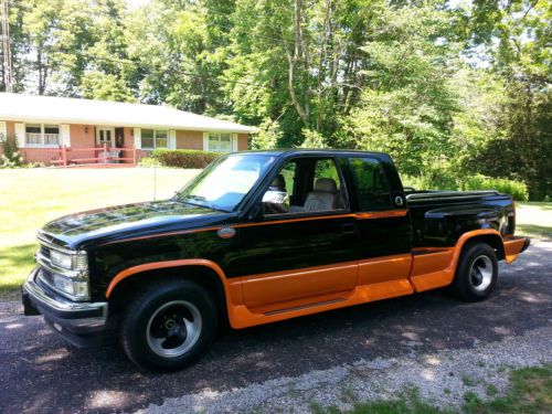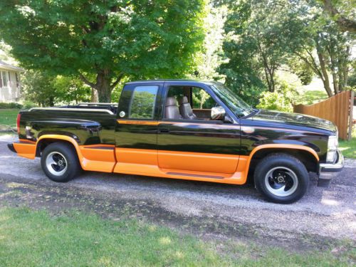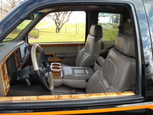 OK, I had this truck on here 26 days ago, luvaustin2 was the winning bidder, He never Paid or contacted me in any way, eBay gave me my fee back and here we go again, I blocked luvaustin2 so he can never bid on anything of mine again and I suggest you do the same ! I am selling my 1994 GMC Short Bed Extended Cab that was fully tricked out when brand new by Southern Comfort Conversions, It has always been loved and taken care of, It has the 350 motor and 700R4 automatic with overdrive, The truck runs and drives great, It has a Flowmaster muffler and dual pipes so it sounds great, I just put 1 new tire on it yesterday and the other 3 tires have great tread, Everything works but the AC, It has a leak someplace, It leaks the freon out, This is a super dependable truck that I would drive anyplace and any distance, All the glass is good and I just recently had a new windshield put in it, I started to see some rust on the front fenders last summer so it now has new fenders and a new custom paint job and I put real Harley Davidson (Chrome) emblems on it and had Harley stripes and decals specially made for it and it now is painted Black & Orange, The truck was black before, There are no dents or scratches and the paint is beautiful, The bed and rear fenders on all 1988 to 1998 stepsides are fiberglass, There for this one has never had any rust on it, There is a dent in the rear bumper and a crack in the fiberglass behind the bumper from when I backed into something, Also the leather on the Drivers seat has some cracks in it and has been sewn in a few spots, Also the truck has a lot of beautiful real wood in it, The wood is excellent but the clear coat on it has cracks in it, This truck only has a (Very Low) 139,121 Original miles on it, The title is Good, Free and Clear and in my name, Please feel free to ask all the questions you have, Also You are very welcome to come and see the truck here at my home in Winchester IL. 62694