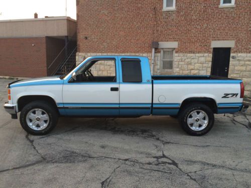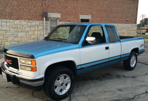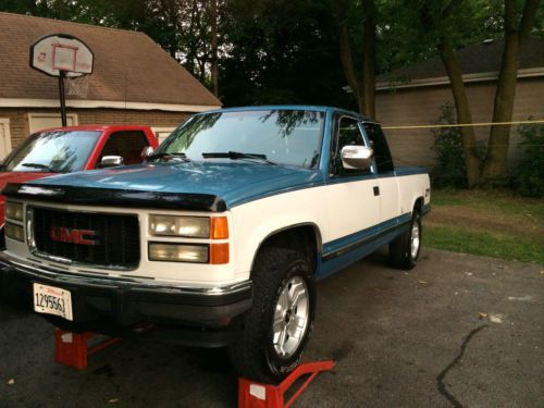 1994 GMC Z71 SIERRA 4X4 EXTENDE CAB GOOD RUNNING CONDITION AND SUPER CLEAN THE TRUCK HAS A LITTLE RUST ON THE BOTTOM OF THE DOOR SEE PICTURES FOR DETAILS. THE BOX DOOR HAS SOME DENTS. THE BACK BUMPER HAS A LITTLE RUST. I DONT HAVE THE KEY FOR THE DOOR SO THE TRUCK CAN NOT BE LOCK . MISSING THE CENTER MIRROR. THE ORIGINAL STEREO WAS DISCONECTED TO PUT A CD STEREO AFTERMARKET. TIRES AND RIMS ARE IN GREAT CONDITION. I JUST CHANGE THE OIL PLEASE SEE PICTURES BEFORE BIDDING AND HAVE MONEY READY TO BUY. AS IS IF YOU HAVE QUESTION CONTACT ME AT 3125762476 IF YOU ARE LOCAL AND YOU WANT TO CHECK THE TRUCK, I AM AVAILABLE AFTER 4PM