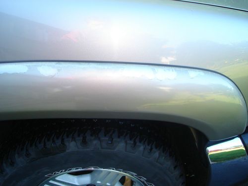 This truck was never in an accident or hit in any way and never had any body work or repainting of any sort. It has only( 2 small dings/chips ). As noted in the 1 picture, the front passenger side flare could use a touch up. Driver side header has a light exhaust leak and needs a gasket, and the only bad thing is that the driver side rocker needs to be replaced. Truck does not leak anything. The Racks are removed from the truck and for sale in another ad.