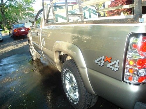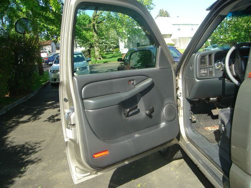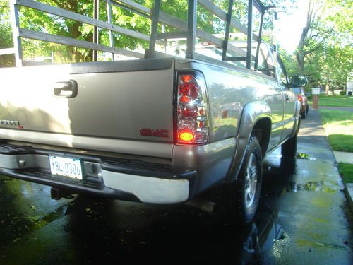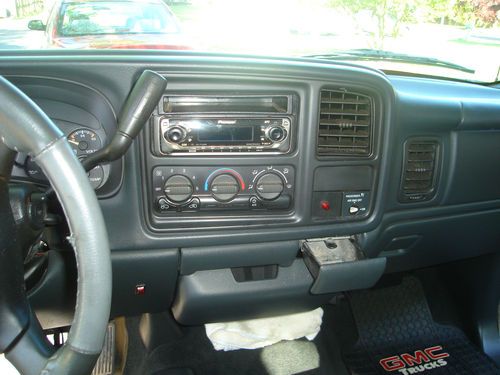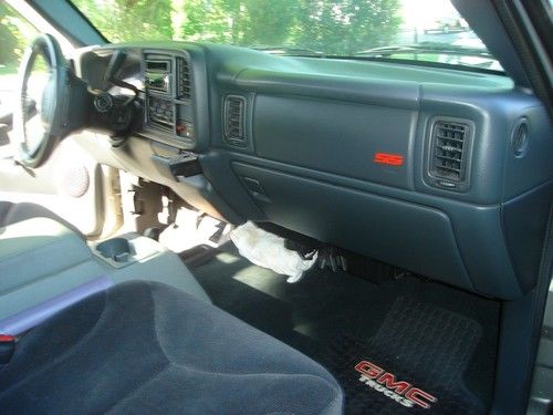 2000 GMC Sierra 1500 4X4 95642 original miles, Pewter Silver exterior ( paint is in excellent condition for it age, still very glossy ) with dark gray interior ( seats are still firm and no rips or tears and carpet looks great), 1 owner--- me, very well maintained 8' bed, 38 gallon fuel tank,, auto on headlights, 4.8liter, 4spd-Auto w/OD and tow/haul mode, 4whl-disc-brakes, 2 buckets and a console, PS, PB ,AC, Alarm , Pioneer am-fm-cd-mp3 4X 50W ( the 4 speaker were upgraded and the face of the cd is detachable ), tilt wheel, Wheels are from a 2007 Yukon and tires have about 60 % tread left on the Goodyear Wrangler tires . Lund sunvisor and Bushwacker fender flares, Edelbrock IAS shocks, storage bin behind the seat. Air conditioner just evacuated and recharged last month and blows cold air, both belts and 2 pulleys replaced at same time. All New brake lines and 2 rear calipers and the exhaust from converter back replaced on 10/2012, Battery, in tank fuel pump and front calipers replaced 6/2012, Trans, transfer case and rear fluids changed on 10/2008 There is a whole window decal at the back window that is not mounted to the window but it is mounted to a piece of plexiglass and layed against the window and can be removed at any time. It has a cold air intake and a Airaid Air pipe and headers that all add to better gas mileage.