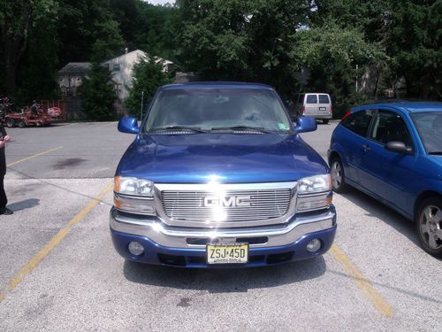 I'm listing this truck for a co-worker. Its a very nice 2003 GMC Sierra 1500, 2WD, 4 door extended cab, 4.8L V8, auto trans, short bed truck with only 39,000 miles. Truck is very sporty looking with custom blue paint, body color hard bed cover, chrome wheels, chrome grill, custom interior seats and headliner, in-dash touch screen dvd stereo system with Polk speakers, dual exhaust with a nice rumble, PW, PDL, cruise, tilt wheel, air conditioning. Bed looks like it was hardly ever used. Tires are probably only about 25% tread and slight paint peeling on plastic part of rear bumper (black plastic top of rear bumper was painted body color but is starting to peel off). Asking $11,900 or best offer. You can email any questions or offers to me or call Flo directly at 856-366-4894.