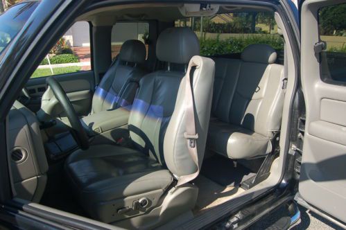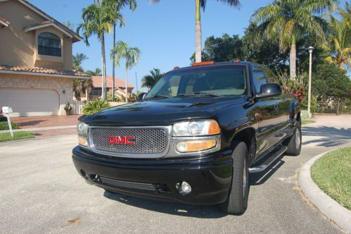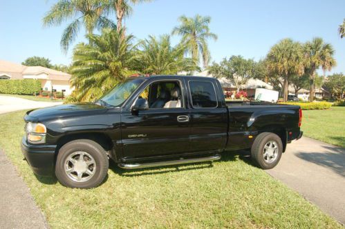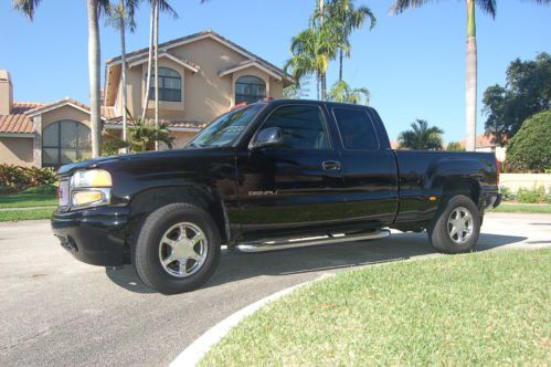 2003 GMC Sierra 1500 Denali Quadrasteer AWD Extended Cab. Tuned Exhaust, Loaded with all the options that come standard with the Denali trim. Equipped with rare all-wheel drive and push button all wheel steering (Quadrasteer) for easy towing and lane changing and makes it a breeze to park in tight parking lots. Turning radius of only 37.4 ft, tighter than most cars. Has heavy duty 6.0 Liter V8 engine that is only equipped on Denali trim. 325 HP and 370 ft lbs of torque. 10,000 lbs trailer weight towing capacity. Full leather seats and trim, 16 way adjustable and heated front seats. Fold up/down rear seat. 16 speaker Bose Premium sound system with 7 disc CD and rear passenger headset controls. Satellite and OnStar roadside assistance. Denali Black Oak wood trim. Tinted windows. Push button fold in mirrors with auto tilting for finding the curb when placed in reverse. Dual front heat zones. DEALER DIRECT AUTO 954-290-7877 $500 shipping credit at BUY IT NOW price.