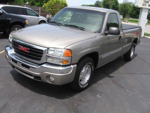 super clean 2003 gmc sierra 1500 reg cab sle, only 92,000 miles, traded in at local Chrysler -jeep dealership, clean used car history, no accidents, no problems, loaded with extras!! 5.3l v8, automatic transmission, rear window defog, power windows, power door locks, key-less entry, polished aluminum wheels, new all terrain radial tires, tonneau bed cover, trailer tow package, abs, tilt wheel, cruise control, am/fm stereo cd, front fog lamps, and lots more. greenwood auto mart is located just 2 miles soutj of the greenwood park mall, we have been family owned and operated since 1996. we offer bank financing and warranties. trades welcome.