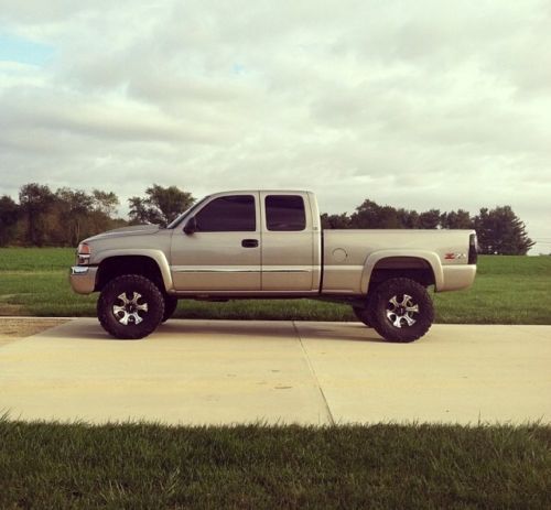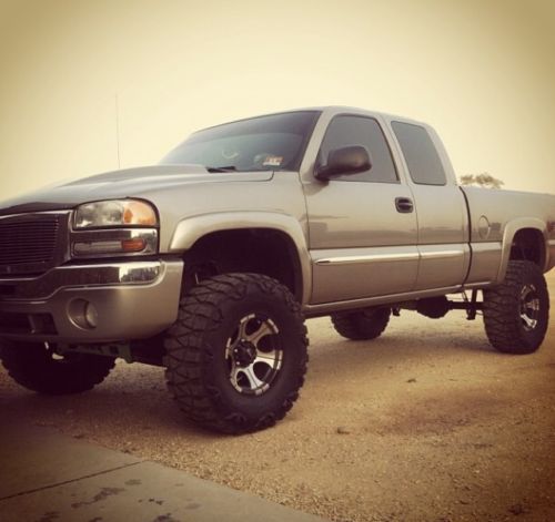 2003 GMC Sierra 1500. Body has 165,000 miles on it, whole drive train has about 20,000 miles on it. Motors has been fully built, rods, cam, bore, the whole nine yards. Trans is built to withstand 450HP. Rear has a Detroit Locker. Very very small rust spots on each cab corner. One scuff/dent by the driver side tail light. Clean cloth interior with full center console. Cluster stopped working with a recall from GM. Tach, speedo, oil pressure gauges do not work. 6-inch Rough Country Suspension lift, 35-inch inch tires, 16-inch rims. Going to need tires soon. 2-inch Cowl hood. Shaved tailgate with roll pan. Tow mirrors.