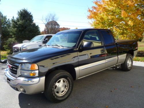 2003 GMC Sierra 1500 SLE 4x4 extended cab, short bed pick up truck. One owner truck in great shape. Nicely equipped. Good tires. Spray in bed liner and rear under cover bed cover. Everything works as it should. New brake pads and calipers recent. Good condition inside and out. Non smoking vehicle. Some rust bubbles starting on rocker panels under doors. See pictures for details. Vehicle can be seen at 21048 zip code.