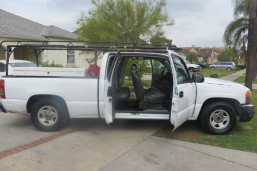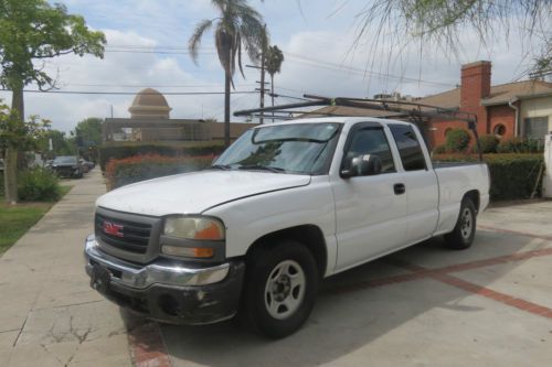 !! 3-DAY NO RESERVE AUCTION! PLEASE ONLY SERIOUS BIDDERS THESE LISTINGS COST MONEY TO PUT UP PLEASE BE CONSIDERATE OPPORTUNITY TO OWN A FANTASTIC FULL SIZE 2004 GMC SIERRA 1500 FULL SIZE PICK-UP WITH TONS AND TONS AND THOUSANDS OF $$$ WORTH OF MATERIALS, TOOLS AND INVENTORY INCLUDED *** APPRAISED AT MORE THEN $3,000+ WORTH OF INVENTORY INCLUDED!!! 203,468 ORIGINAL 2-OWNER CA MILES AND STILL RUNS AND DRIVES LIKE A CHAMP THIS TRUCK RUNS AND DRIVES GREAT CHECK ENGINE LIGHT ON(SAYS CHANGE ENGINE OIL) MIGHT NEED SOME BRAKE WORK SOON--- INCLUDED **Brand new Brak-best select premium ceramic brake pads for front and back Tires **SIDE DRIVER MIRROR IS CRACKED ** SPEEDOMETER IS BROKEN **BACK WINDOW IS OFF OF HINGE EXCELLENT MICHELLEN & FIRESTONE TIRES WITH APPROX 70% BUYER RESPONSIBLE FOR CA DMV FEES, REGISTRATION, TAXES, SMOG, TITLING FEE... LICENSE PLATE # 7H85815 VIN # 2GTEC19V841105526 LICENSE EXPIRATION 11/30/2011 **** BUYER PLEASE DO YOUR OWN RESEARCH ON PAST DUE REGISTRATION FEES!!!!!! CLEAN AUTO-CHECK ATTACHED/CLEAN TITLE/NO ACCIDENTS NICE COLOR COMBO NICE DECENT FAIR BODY - METALLIC WHITE IN DECENT CONDITION- HAS SOME DINGS AND SCRATCHES AND BUMPS AND PAINT PEELING... NOTHING MAJOR, NO RUST... OVERALL DECENT CONDITION ESPECIALLY CONSIDERING ITS A 10YR OLD USED WORKERS PICKUP!! DECENT FAIR GRAY CLOTH UPHOLSTERY ALL AROUND INTERIOR SOME RIPS AND TEARS NOTHING TOO MAJOR... DECENT SHAPE FOR A USED 2004 USED GMC PICK-UP!!! POWERFUL YET ALSO ECONOMICAL EXCELLENT 4.8L 8CYL ENGINE!! INCLUDED IN THIS AMAZING 2004 FULL SIZE GMC 1500 SIERRA PICK-UP IS Roof rack, truck rack, hauling rack system with Heavy duty mounted toolbox