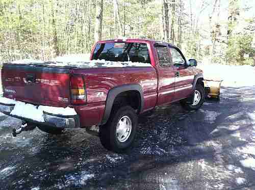 For sale, a 2004 GMC Sierra 1500 extended cab 4x4 pick up truck. This truck is a turnkey vehicle. It doesn't leak or use a drop of oil. It comes with a 7 1/2 foot Diamond Meyer plow. It was never used as a contracted plow vehicle as it was only used to plow my driveway. Before winter I had the brakes done front and rear including backing plates in the rear. I also had the fluid changed in the front and rear differentials. I had the transmission fluid checked and the transfer case fluid checked and they were both perfect. The truck has a brand new Interstate battery. I had additional leafs put in the rear suspension to give it about 3 inches of lift. I also had leveling keys installed as well as heavy duty timbrens installed in the front to give about 2 1/2 inches of lift as well as to keep the front from sinking while using the plow. All of this extra equipment was professionally installed. This truck has an awesome stance. It has leather heated front seats, leather rear seats, fully power everything. It is loaded.