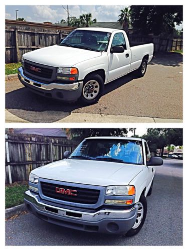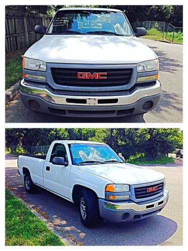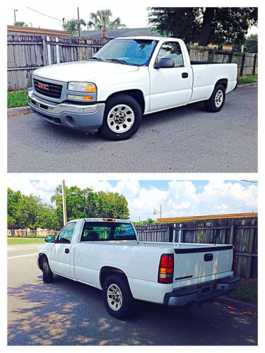2006 GMC SIERRA 1500 SL SINGLE CAB Low mileage, clean and fleet maintained Pick Up truck!!! Obviously well taken care of and in great condition for a fleet truck. This 2006 GMC Sierra runs and drives excellent. Florida Pick Up and Clean FL title All power options function, and the AC blows strong and cold. White exterior paint shines like glass, and interior is exceptionally clean. All original PICK UP See report following detailed photographs If you are fan of the GMC/CHEVY PICK UP'S, this is possibly the best deal currently listed here on Ebay !!! Hello thank you for stopping in by our, "NO RESERVE", auction for this extra clean, outstanding condition for her year, very well kept and regularly serviced (FLEET MAINTAINED), original 166,585 mile, 2006 GMC SIERRA. Clean Carfax history report on this one! She has been thoroughly inspected, serviced and she is ready to go! According to the Carfax report below, she is $1300 above retail book value!! Great Pick Up style with a great ride balance, power, lasting beauty and beautifully finished. The, 4.3L VORTEC V6, engine is solid, strong and has plenty of power when needed, the engine it self can pull up to 5,000lb with the tow winch. Evidently this Pick Up was regularly serviced by the fleet company As you can see in the many detailed photos taken, the "WHITE" exterior paint shines like the Florida sun. My have some minor chips/dings, overall she looks great! The "GRAY", Vinyl, interior looks really good, really clean, really nice. No dash pad cracks! She is in very good shape. A Real, True, clean, well maintained GMC SIERRA! it would be difficult to mistake the GMC SIERRA for anything but a Silverado or Sierra. She features, 17" steal wheels, 5-speed automatic transmission that shifts nice and smooth, 4.3L V6, tachometer, 4-wheel ABS brakes, front airbags, spare tire, jack, tools, clean Carfax and more! The air conditioning is ice cold! What a great car! Check her out! All of our vehicles are sold with clean titles. Our titles are free and clear of any and all liens. At the time of delivery, we will include any extra keys/remotes that we received for this automobile when we purchased it. NO RESERVE ACTION 2006 GMC SIERRA GMC 1500 SL ORIGINAL 166,585 MILES FLORIDA PICK UP AUTOMATIC FLEET OWNED REAR WHEEL DRIVE NO OIL LEAKS, NO SMOKE 100% BONE STOCK CLEAN AND CLEAR FL TITLE IN HAND RUNS AND DRIVES GREAT ENGINE STARTS AND RUNS PERFECT TOW PGK LONG BED 8.1FT NO RUST