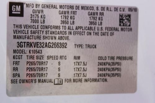 VIN (Vehicle Identification Number): 3GTRKVE32AG266392