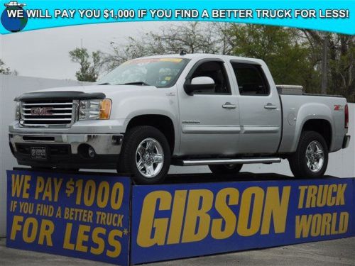WWW.GIBSONTRUCKWORLD.COM*2010 GMC Sierra 1500 SLT Z71 All Terrain Crew Cab 4X4* Carfax 1 Owner with powertrain warranty, good thru 7/28/15 or 100k miles. Also comes with 1 year REAL FREE BUMPER TO BUMPER WARRANTY honored anywhere in the United States with our exclusive 15 DAY RETURN/EXCHANGE POLICY! That is how confident we are in our trucks! Do not make a $3K+ mistake, B4 you buy a used truck demand to see shop bills & have the truck inspected by a 3rd party! Riding on a nice set of Firestones, $2,250 navigation system, $545 toolbox, $470 backup camera & sensors, $250 Extang tonneau cover, $120 adjustable pedals, dual power heated 2 tone leather seating with memory, CD player, steering wheel controls, tilt steering, cruise control, OnStar, keyless entry with alarm, towing package, bed liner, power windows, power mirrors, power door locks*Gibson is the only dealer that gives a REAL FREE 12 MONTH BUMPER TO BUMPER WARRANTY VALID ACROSS THE UNITED STATES, 12 MONTHS FREE MAINTENANCE FROM OUR 23 BAY SERVICE DEPARTMENT AND OUR EXCLUSIVE 15 DAY RETURN/EXCHANGE POLICY! It sounds too good to be true, but it is true! We will pay you $1,000 if you find a better truck for less, Gibson Truck World is Nations ahead of the competition! AT GIBSON TRUCK WORLD AN EDUCATED CONSUMER IS OUR BEST CUSTOMER**Repair Description: Total Invested = $617.92*10 Mile Road Test, 135 Point Inspection, Lube, Oil & Filter, Alignment,Serviced Transfer Case, Replaced Wiper Blades, Replaced 3rd Brake Light, Balanced and Rotate Tires.Battery Condition Test : Good, Alternator Condition Test : GoodLabor time quoted by All Data Universal ShopKey Gibson Truck World in Sanford, FL has the lowest price for used trucks period! Gibson specializes in pre-owned Ford trucks, Dodge trucks, Chevrolet trucks, GMC trucks, Jeeps and SUVs. Gibson Truck World sells, ships trucks across the country & worldwide. We have a large selection of F150, F250, F350, F450, F550, RAM 3500, 2500, 1500 Chevy or GM 3500, 2500, 1500 quality pre-owned pickup trucks.