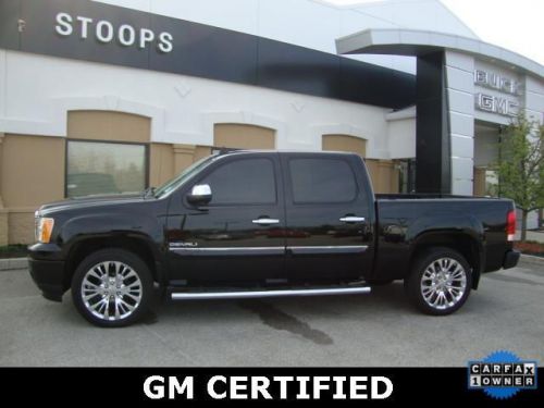 SAVINGS OFF LIST PRICE OF $44,995- Sierra 1500 Denali, 4D Crew Cab, Vortec 6.2L V8 SPI VVT Flex Fuel, 6-Speed Automatic HD Electronic with Overdrive, AWD, Carbon Black Metallic, Ebony Leather, POWER SUNROOF, NAVIGATION, BLUETOOTH, ONSTAR EQUIPPED, GM CERTIFIED, LOW MILES, ONE OWNER, 20 CHROME ALUMINUM WHEELS, BED LINER, Heavy Duty Cooling Package (Heavy-Duty Air-to-Oil External Engine Oil Cooler), Aluminized Stainless-Steel Muffler & Tailpipe, BOSE PREMIUM AUDIO, Front dual zone A/C, Heated door mirrors, Heated front seats, Heated steering wheel, Memory seat, Pedal memory, Power door mirrors, Preferred Equipment Group 5SA, Radio: AM/FM Stereo w/MP3 Compatible 6CD Player, Rear Vision Camera, Remote keyless entry, SIRIUSXM Satellite Radio, Turn signal indicator mirrors, and Ventilated front seats. STOOPS BUICK GMC-Proudly serving the Plainfield, Indianapolis, Mooresville, Greenwood and all surrounding communities for over 2 decades! Don't pay too much for the fantastic-looking truck you want...Come on down and take a look at this stunning 2012 GMC Sierra 1500. Your garage will only be the second one this one-owner Sierra 1500 has parked in, and you can definitely see the pride of ownership it experienced in that first garage. A 2010 Consumer Digest Best Buy Award winner. Keeps you on the road and in Control. This truck pulls its own weight and then some....Why settle when you don't have to? Check out Legendary performance today at Stoops Buick GMC in Plainfield, Indiana. Stoops Buick-GMC is a COMPLETE CARE dealership that has been in the community for 20 years AND maintains a great reputation.