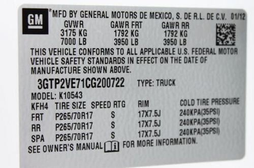 VIN (Vehicle Identification Number): 3GTP2VE71CG200722
