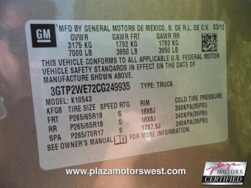 VIN (Vehicle Identification Number): 3GTP2WE72CG249935