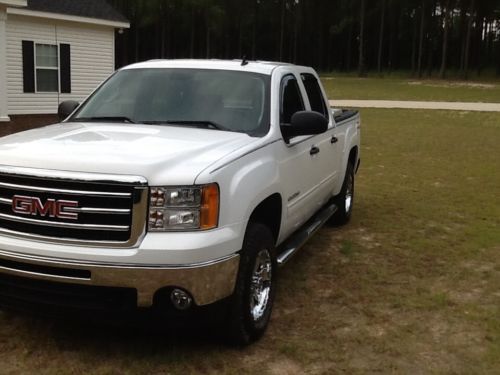 You are looking at a 2013 GMC Sierra crew cab 4x4. I bought this truck new last June. The truck is super clean and has never been taken off road. The truck has a Bed liner, inner fender blackout kit, window rain guards, 30% window tint, Custom Leather Igee seat covers, polished aluminum wheels, chrome step bars, towing package, XM, steering wheel controls, back up camera, Wade custom floor mats, black bed rails, 2 key fobs, and all original paperwork including the Window sticker, remote start, dual climate control, tool box, electronic 4 wheel drive. This is a 5.3L flex fuel engine. The truck has been raised in the front end using Tough Country blocks to level the ride height and a new 4 wheel Laser Alignment was performed. The truck is perfect inside and out. It has a little over 16,000 miles on it. That number will change a little each day because I drive it 20 miles per day roughly. I have the title in hand. Never any accidents or problems. Has 4 years of transferable warranty left up to 100,000 miles. You will not be disappointed in this truck. Come drive it and you will absolutely love it. Pictures don't do it justice. Feel free to call Lee at 334-441-8164. I am not a dealer, I am a private seller.