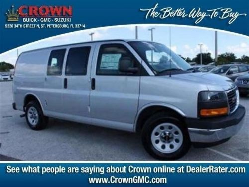 , Before Discount:$29,950.00, Dealer Discount:($3,063.00), Cash Incentive:($2,000.00), Special Discount:($500.00), Internet Price:$24,387.00, Total Savings:($5,563.00)! The exterior features of the 2014 GMC Savana Cargo Van help you work smarter. Class-exclusive side-access storage bins provide the flexibility to tackle any job. For cargo loading flexibility, swing-out passenger side doors come standard, and on regular wheelbase gas models, a swing???out door for the drivers side is an option as well. The accommodating interior of the Savana Cargo Van is designed to put everything you need within reach. The well-organized instrument panel and driver information center will help you get the job done right. The panel features easy-to-read-gauge clusters including fuel level and maintenance monitors. Plus, available features such as cruise control, leather-wrapped steering wheel and steering-wheel-mounted audio controls allow you to customize your vehicle. Plus, new for 2014, all models except the 1500 Regular Wheelbase, give you the option to get available 5-passenger seating. A variety of engines are available per model to suit your needs, be it for personal use or commercial use. Also, depending on the model, you either get a 4 speed automatic or a 6-speed heavy duty automatic transmission. Tow/haul mode provides a dual-mode shift program that lets you hold gears longer, giving you more torque and providing a smooth transition between gears when climbing hills. The StabiliTrak system comes standard and helps keep the vehicle in the direction you are steering it and manages throttle and braking control. Savana Cargo Vans help you get the job done safely. All models feature driver and front-passenger air bags. The standard tire pressure monitoring system uses tiny sensors inside the wheel to broadcast tire pressure to your vehicle, alerting you to their status and Locking Rear Differential can sense a difference in wheel speed between the left and right rear wheels and lock them to turn in unison for added traction. Come drive the 2014 GMC Savana Cargo Van today! Crown Automotive Group serving Tampa Bay Florida offers great low prices, rebates and incentives for new Group & used Group cars, vans and SUVs to all of our neighbors in St. Petersburg, Largo, Clearwater, and Pinellas Park. Our Expert Service & Parts staff assist our Florida customers keep their Group vehicles in great shape.