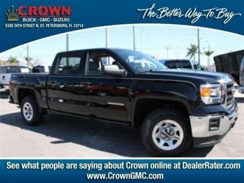 , Before Discount:$33,105.00, Dealer Discount:($1,957.00), Cash Incentive:($1,500.00), Special Discount:($400.00), Internet Price:$29,248.00, Total Savings:($3,857.00)!MP3 Player, The 2014 GMC Sierra 1500 is all new for 2014. It possesses chiseled features and distinct lines that not only make it look imposing, but increase how aerodynamic it is as well. In front, between the projector beam headlights, there is an incredibly striking and enormous chrome grille. While driving, it takes in a large portion of the air for cooling the engine, and lets the remainder glide across the truck. It is complimented by a bumper made of sculpted steel, a strong angled hood, and bulging fender flares. The changes made to the truck body, and the resulting improvements in air flow, add up to a quieter cabin for you and your passengers. Plus, its new hydraulic body mounts help mitigate vibrations to give you a smoother and more comfortable ride. Open the doors and the Sierra's interior welcomes you into a calming and comfortable retreat from the busy outside world. The seats utilize a new design for lasting comfort, and reduced fatigue. On select models, the instrument panel incorporates a high-end soft feel, combined with trim made of aluminum for an overall look that is very stylish. The instrument panel has been laid out in such a way that your controls are now easier to get to and see, with larger buttons and knobs, which are more convenient to grab. Spoil yourself with the available 8-inch IntelliLink touch-screen system that you can opt for on SLE and SLT trims. It lets you control your radio and make calls hands-free, wirelessly stream music from your phone, use the rear view camera, and operate the navigation system. Base Level Sierra trims on all models come with a powerful 4.3-Liter V6 EcoTech3 Engine with 285 horsepower and a 6-speed automatic transmission. You have the choice between the Crew Cab, Double Cab, and Regular Cab, and all except the Double Cab give you the option of two different box sizes. Plus, since you have the choice between two to three trims based on the model picked, GMC has a 2014 Sierra 1500 for just about anyone. Crown Automotive Group serving Tampa Bay Florida offers great low prices, rebates and incentives for new Group & used Group cars, vans and SUVs to all of our neighbors in St. Petersburg, Largo, Clearwater, and Pinellas Park. Our Expert Service & Parts staff assist our Florida customers keep their Group vehicles in great shape.