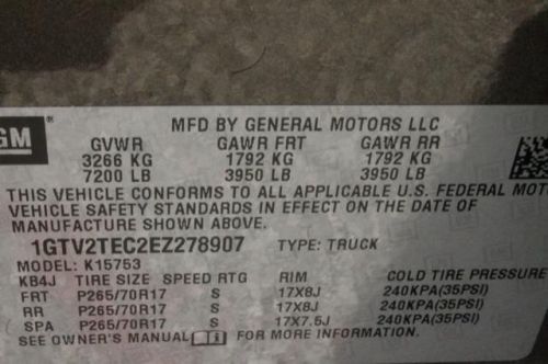 VIN (Vehicle Identification Number): 1GTV2TEC2EZ278907