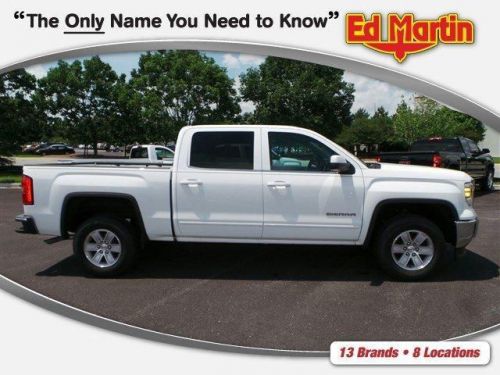 The 2014 GMC Sierra 1500 is all new for 2014. It possesses chiseled features and distinct lines that not only make it look imposing, but increase how aerodynamic it is as well. In front, between the projector beam headlights, there is an incredibly striking and enormous chrome grille. While driving, it takes in a large portion of the air for cooling the engine, and lets the remainder glide across the truck. It is complimented by a bumper made of sculpted steel, a strong angled hood, and bulging fender flares. The changes made to the truck body, and the resulting improvements in air flow, add up to a quieter cabin for you and your passengers. Plus, its new hydraulic body mounts help mitigate vibrations to give you a smoother and more comfortable ride. Open the doors and the Sierra's interior welcomes you into a calming and comfortable retreat from the busy outside world. The seats utilize a new design for lasting comfort, and reduced fatigue. On select models, the instrument panel incorporates a high-end soft feel, combined with trim made of aluminum for an overall look that is very stylish. The instrument panel has been laid out in such a way that your controls are now easier to get to and see, with larger buttons and knobs, which are more convenient to grab. Spoil yourself with the available 8-inch IntelliLink touch-screen system that you can opt for on SLE and SLT trims. It lets you control your radio and make calls hands-free, wirelessly stream music from your phone, use the rear view camera, and operate the navigation system. Base Level Sierra trims on all models come with a powerful 4.3-Liter V6 EcoTech3 Engine with 285 horsepower and a 6-speed automatic transmission. You have the choice between the Crew Cab, Double Cab, and Regular Cab, and all except the Double Cab give you the option of two different box sizes. Plus, since you have the choice between two to three trims based on the model picked, GMC has a 2014 Sierra 1500 for just about anyone.CUSTOMER DIALO Pricing includes destination, optional equipment and reflects manufacturer incentives. We pride ourselves in having an upfront, completely transparent purchase process. Nothing hidden and no surprises! Our goal, to create an automotive buying experience that will last a lifetime. Our hope, you will share your Ed Martin Experience with others. Sincerely, Ric McCoy General Manager