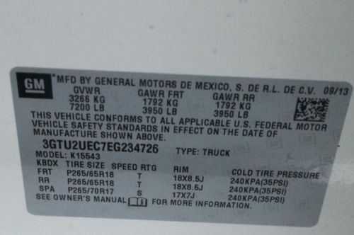 VIN (Vehicle Identification Number): 3GTU2UEC7EG234726