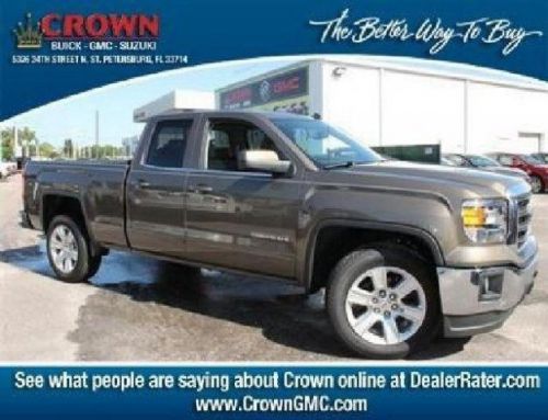 , Before Discount:$39,655.00, Dealer Discount:($2,959.00), Cash Incentive:($1,500.00), Special Discount:($400.00), Internet Price:$34,796.00, Total Savings:($4,859.00)!BACK-UP CAMERA, BLUETOOTH, MP3 Player, KEYLESS ENTRY, SAT RADIO, The 2014 GMC Sierra 1500 is all new for 2014. It possesses chiseled features and distinct lines that not only make it look imposing, but increase how aerodynamic it is as well. In front, between the projector beam headlights, there is an incredibly striking and enormous chrome grille. While driving, it takes in a large portion of the air for cooling the engine, and lets the remainder glide across the truck. It is complimented by a bumper made of sculpted steel, a strong angled hood, and bulging fender flares. The changes made to the truck body, and the resulting improvements in air flow, add up to a quieter cabin for you and your passengers. Plus, its new hydraulic body mounts help mitigate vibrations to give you a smoother and more comfortable ride. Open the doors and the Sierra's interior welcomes you into a calming and comfortable retreat from the busy outside world. The seats utilize a new design for lasting comfort, and reduced fatigue. On select models, the instrument panel incorporates a high-end soft feel, combined with trim made of aluminum for an overall look that is very stylish. The instrument panel has been laid out in such a way that your controls are now easier to get to and see, with larger buttons and knobs, which are more convenient to grab. Spoil yourself with the available 8-inch IntelliLink touch-screen system that you can opt for on SLE and SLT trims. It lets you control your radio and make calls hands-free, wirelessly stream music from your phone, use the rear view camera, and operate the navigation system. Base Level Sierra trims on all models come with a powerful 4.3-Liter V6 EcoTech3 Engine with 285 horsepower and a 6-speed automatic transmission. You have the choice between the Crew Cab, Double Cab, and Regular Cab, and all except the Double Cab give you the option of two different box sizes. Plus, since you have the choice between two to three trims based on the model picked, GMC has a 2014 Sierra 1500 for just about anyone. Crown Automotive Group serving Tampa Bay Florida offers great low prices, rebates and incentives for new Group & used Group cars, vans and SUVs to all of our neighbors in St. Petersburg, Largo, Clearwater, and Pinellas Park. Our Expert Service & Parts staff assist our Florida customers keep their Group vehicles in great shape.