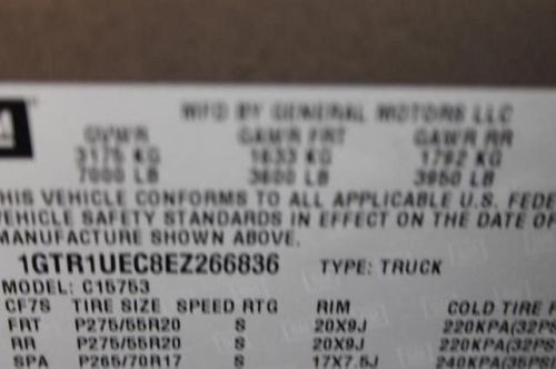 VIN (Vehicle Identification Number): 1GTR1UEC8EZ266836