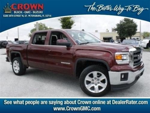 , Before Discount:$42,740.00, Bonus Cash:($1,000.00), Dealer Discount:($3,309.00), Cash Incentive:($750.00), Special Discount:($500.00), Internet Price:$37,181.00, Total Savings:($5,559.00)!BACK-UP CAMERA, BLUETOOTH, MP3 Player, KEYLESS ENTRY, SAT RADIO, The 2014 GMC Sierra 1500 is all new for 2014. It possesses chiseled features and distinct lines that not only make it look imposing, but increase how aerodynamic it is as well. In front, between the projector beam headlights, there is an incredibly striking and enormous chrome grille. While driving, it takes in a large portion of the air for cooling the engine, and lets the remainder glide across the truck. It is complimented by a bumper made of sculpted steel, a strong angled hood, and bulging fender flares. The changes made to the truck body, and the resulting improvements in air flow, add up to a quieter cabin for you and your passengers. Plus, its new hydraulic body mounts help mitigate vibrations to give you a smoother and more comfortable ride. Open the doors and the Sierra's interior welcomes you into a calming and comfortable retreat from the busy outside world. The seats utilize a new design for lasting comfort, and reduced fatigue. On select models, the instrument panel incorporates a high-end soft feel, combined with trim made of aluminum for an overall look that is very stylish. The instrument panel has been laid out in such a way that your controls are now easier to get to and see, with larger buttons and knobs, which are more convenient to grab. Spoil yourself with the available 8-inch IntelliLink touch-screen system that you can opt for on SLE and SLT trims. It lets you control your radio and make calls hands-free, wirelessly stream music from your phone, use the rear view camera, and operate the navigation system. Base Level Sierra trims on all models come with a powerful 4.3-Liter V6 EcoTech3 Engine with 285 horsepower and a 6-speed automatic transmission. You have the choice between the Crew Cab, Double Cab, and Regular Cab, and all except the Double Cab give you the option of two different box sizes. Plus, since you have the choice between two to three trims based on the model picked, GMC has a 2014 Sierra 1500 for just about anyone. Crown Automotive Group serving Tampa Bay Florida offers great low prices, rebates and incentives for new Group & used Group cars, vans and SUVs to all of our neighbors in St. Petersburg, Largo, Clearwater, and Pinellas Park. Our Expert Service & Parts staff assist our Florida customers keep their Group vehicles in great shape.