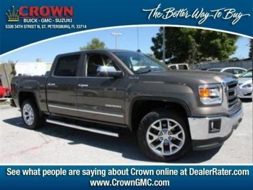 , Before Discount:$50,735.00, Bonus Cash:($1,000.00), Dealer Discount:($3,844.00), Cash Incentive:($750.00), Special Discount:($400.00), Internet Price:$44,741.00, Total Savings:($5,994.00)!4X4, BACK-UP CAMERA, LEATHER, BLUETOOTH, MP3 Player, KEYLESS ENTRY, SAT RADIO, The 2014 GMC Sierra 1500 is all new for 2014. It possesses chiseled features and distinct lines that not only make it look imposing, but increase how aerodynamic it is as well. In front, between the projector beam headlights, there is an incredibly striking and enormous chrome grille. While driving, it takes in a large portion of the air for cooling the engine, and lets the remainder glide across the truck. It is complimented by a bumper made of sculpted steel, a strong angled hood, and bulging fender flares. The changes made to the truck body, and the resulting improvements in air flow, add up to a quieter cabin for you and your passengers. Plus, its new hydraulic body mounts help mitigate vibrations to give you a smoother and more comfortable ride. Open the doors and the Sierra's interior welcomes you into a calming and comfortable retreat from the busy outside world. The seats utilize a new design for lasting comfort, and reduced fatigue. On select models, the instrument panel incorporates a high-end soft feel, combined with trim made of aluminum for an overall look that is very stylish. The instrument panel has been laid out in such a way that your controls are now easier to get to and see, with larger buttons and knobs, which are more convenient to grab. Spoil yourself with the available 8-inch IntelliLink touch-screen system that you can opt for on SLE and SLT trims. It lets you control your radio and make calls hands-free, wirelessly stream music from your phone, use the rear view camera, and operate the navigation system. Base Level Sierra trims on all models come with a powerful 4.3-Liter V6 EcoTech3 Engine with 285 horsepower and a 6-speed automatic transmission. You have the choice between the Crew Cab, Double Cab, and Regular Cab, and all except the Double Cab give you the option of two different box sizes. Plus, since you have the choice between two to three trims based on the model picked, GMC has a 2014 Sierra 1500 for just about anyone. Crown Automotive Group serving Tampa Bay Florida offers great low prices, rebates and incentives for new Group & used Group cars, vans and SUVs to all of our neighbors in St. Petersburg, Largo, Clearwater, and Pinellas Park. Our Expert Service & Parts staff assist our Florida customers keep their Group vehicles in great shape.
