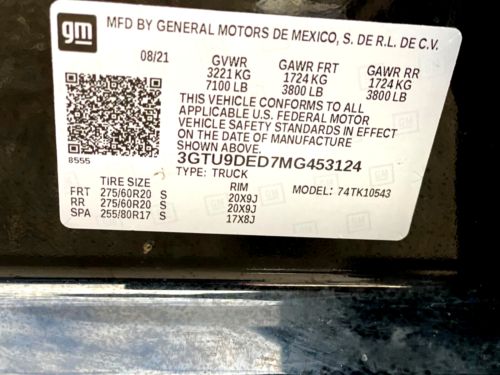 VIN (Vehicle Identification Number): 3GTU9DED7MG453124