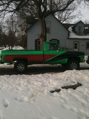 This is a very easy truck to spot in a parking lot. It sounds and drives great. Bought it to help out a friend, but have no use for it. It could use box sides they look a little rough. Most of the truck is in above average condition. 4 wheel drive works good. The rims and tires are brand new with less than a hundred mile on them.