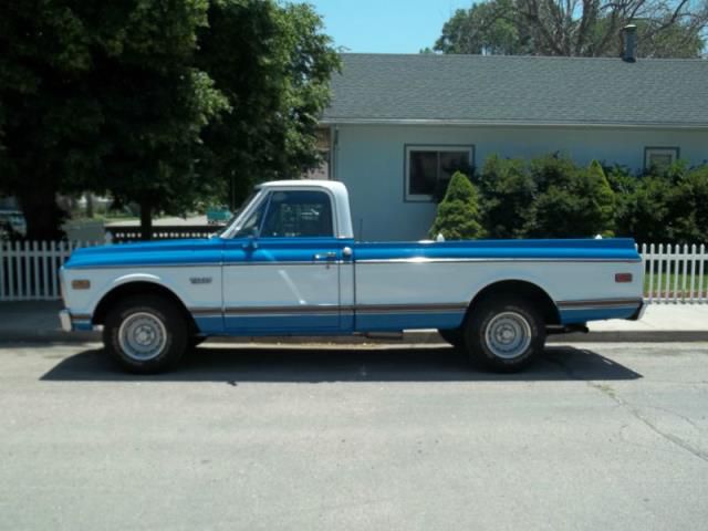1971 GMC C-1500 Pickup. Original 402 CI 300 HP. Turbo 400 transmission. 12 bolt GM rear end. Leaf springs. Complete new exhaust system. New original carburetor. New fuel pump. New shocks. Rebuilt factory air compressor and hoses. Rust free. Mileage 48,242 documented miles. Everything works. Cigarette lighter never used. Non-smoker. $4,000.00 dollars in new parts. Have receipts. $11,000.00 base coat, clear, color sanded, and buffed paint job. Restoration took 5 years to complete to original specifications. Re-chromed bumpers and original sill plates. New complete grill, and head-light belzles. Original jack, handle, and lug-wrench. New tires and spare. Complete new interior to original specifications. The motor serial number is TO315TKB (the TKB designates 402 CI). All new upper and lower, and tail-gate moldings. Front disc brakes. Under-carriage was cleaned, painted, and under-coated.