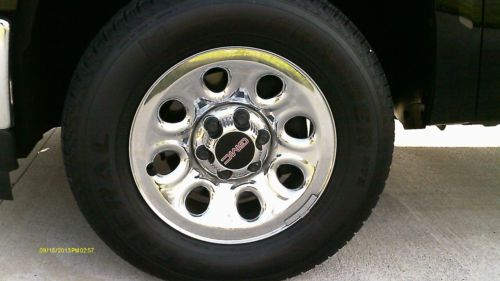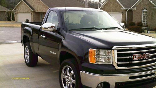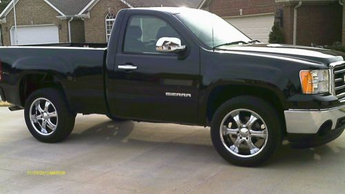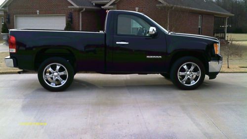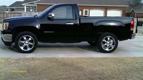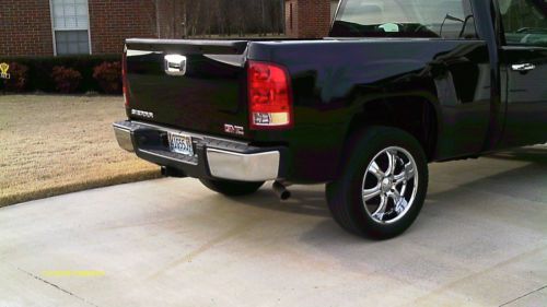 I HAVE A BEAUTIFUL GMC SIERRA STANDARD CAB. GARAGE KEPT NON SMOKER .....THIS TRUCK HAS 20" BOSS WHEELS ( TIRES ARE AVERAGE ) WHEELS LIKE NEW. I ALSO HAVE THE FACTORY CHROME WHEELS ( SEE PICS.) IF U HAD RATHER HAVE THEM........THE TRUCK HAS REMAINING FACTORY WARRANTY.....5 YR. 100000 MILE.... ALSO YEAR FREE MAINTANCE SERVICE. TRUCK HAS THE PLUS PACKAGE WHICH INCLUDES CHROME STYLE WHEELS,CHROME GRILL,FRONT FOG LIGHTS, FRONT TOW HOOKS ( $ 785.00 ADD ON) ALSO I HAVE ADDED CHROME MIRROR COVERS, CHROME DOOR& TAIL GATE HANDLES ..........HAS POWER WINDOWS, POWER DOOR LOCKS WITH 2 REMOTES, BEDLINER, AND RECEIVER HITCH.....HAS TOTAL OPTION OF $ 1945.00 THIS IS A ONE OF A KIND TRUCK, ( THERE IS A VERY SMALL DING ON THE BED SIDE ).................CALL 256 740 0809