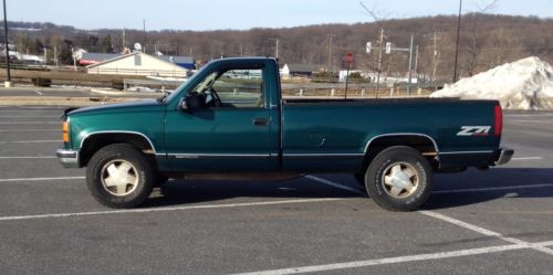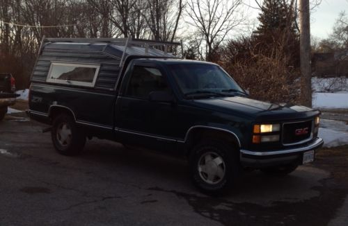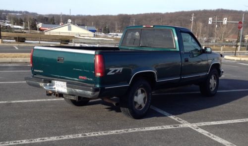 The Particulars: The above is a brief description of our 1997 GMC Sierra SLE Z71 (K1500) pickup truck. I bought this truck used in May of 2001. It is currently owned by my 71 year old Father, who has driven it for the last six years. It is a Virginia truck, purchased new in Woodbridge VA. It then lived with me for a while in Leesburg, VA, then spent a couple years in Maryland, a couple in Pennsylvania, and finally went with my Father to New Castle, VA. Since 2003, I had used it as a farm truck, and drove it very little. My Father does service work for condominiums, and has driven it every day for the last six years. You read the mileage correctly - it has 320,505 miles. Nevertheless, it is a great runner, very strong, and has pulled our 2 horse trailer with ease around here and to North Carolina and back. The Z 71 package is awesome. The limited slip rear and auto locking front differentials make it a very hard truck to get stuck... Overall I'd give it a "fair condition" rating (see below for more details). I never list with reserves, so if you snag this truck for the minimum bid of $999.00, you will have gotten one heck of a good deal. A color-matched aluminum utility cap will go with the truck if the selling price reaches $1,200 or more! See photos. It is a highly functional and nice looking cap with locking side doors and ladder racks. The cap (like the truck) shows signs of wear including scratches, dents, a portion of the ladder rack is bent, etc. The body is in good shape with the exception of one dent in the bed behind the passenger door, and some scratching on the tailgate, hood and passenger side front fender (see pictures). Otherwise there are no major dents, scrapes, etc., but there are certainly scratches and dings which are normal for a vehicle of this age & mileage. The interior is reasonably clean, but is certainly not "detailed". There are tears and some small burns in the seat (see pictures), and a few stains in the headliner, but other than that, the interior is in fairly good shape. The good news: Many Chevy / GMC trucks this age are rusted through at the cab corners. The cab corners on this truck are (miraculously) still solid. Other than a few small rust spots around the windshield, the body is rust free. Again, this is very uncommon, particularly for the age and mileage. There are a few minor mechanical "quirks": The AC compressor leaks and needs charging or possibly replacing (the AC is currently not functioning, but the heat works fine). The engine has had no major work, and is very strong. It does use about a quart of oil every 1,500 miles or so (not uncommon for very high mileage vehicles). Since it had about 80,000 miles, it has always benefited from full synthetic oil, which probably has a lot to do with why it still runs well with that many miles. There is a small exhaust leak at the manifold, which can be heard, but is not loud. The "check engine" light is on, and has been on for at least 150,000 miles. These trucks are known for this sort of thing - it does not require an emissions inspection in Virginia, so both my Dad and I have always just let that light go... The front tires are in decent shape, but the truck has always worn the inside or outside edges out prematurely. You will note the uneven wear in the pictures. The rear tires are in very good shape. As noted above, the transmission was replaced in the summer of 2013. Both universal joints were replaced in February, and several other smaller things. Dad knew he was selling the truck and wanted to feel confident that it was in good running order for its new owner. The truck is certainly not perfect, but it is in amazing condition for its age and its mileage. As with all of my listings, I have gone out of my way to point out the "flaws" here. If you have any questions, please call me at 610 806 3954. Also, you are encouraged to come see / test drive the truck. I am not a mechanic, and nothing you see above should be construed as a mechanic's opinion. If you would like to have your mechanic look at the truck, I would encourage that as well. The truck is located in Cochranville, PA, which is roughly in between Baltimore and Philadelphia.