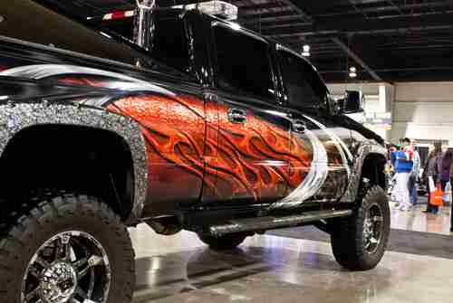 -Hydrographic dipping - skull print on front & rear bumper, fender flares, step bars, rims, mirrors, vent visors, door handles, shock loops, engine cowl, dash and top red lights - worth over $5000