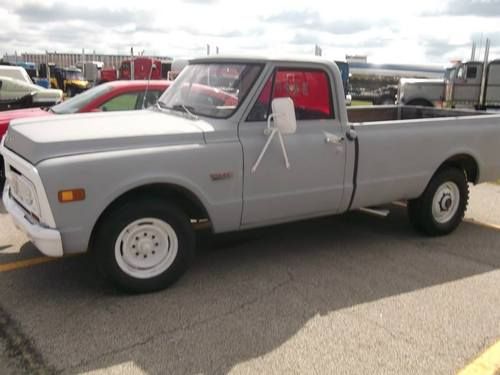 HERE I HAVE A 1969 GMC 2500 PICKUP TRUCK LONG BED WITH THE ORIGINAL 307 MOTOR IN IT ALSO IS A 4 SPEED MANUAL TRANSMISSION HAS NEW ALTERNATOR NEW DUAL EXAUGHST TIPS STAINLESS STEELE IT HAS BEEN SANDED AND PRIMED UNPROFFESIONALLY THE BED WILL NEED A NEW FLOOR ROCKER PANELS HAS BEEN REPLACED ALONG WITH THE FRONT AND REAR BUMPERS IT WILL NEED A NEW CABURATOR BUT DOES CURRENTLY RUN