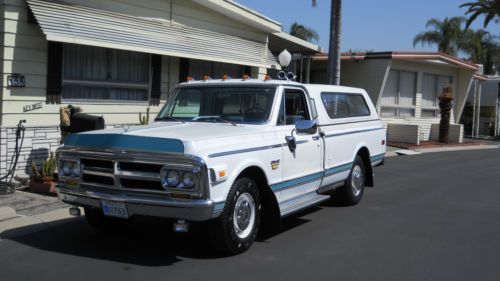 1969 Gmc 3/4 Truck ( smog exemp.) 396. cu. in. Headers-Trans Cooler. 3 Gas Tanks, special stainless bumper. air shocks-cruise control. air cond. ,stereo,Air Horns, camper shell w/ carpet kit 62,000 original used oly for towing 44 yrs. serious only 13,000 o.b.o. call Mike 562-714-7990