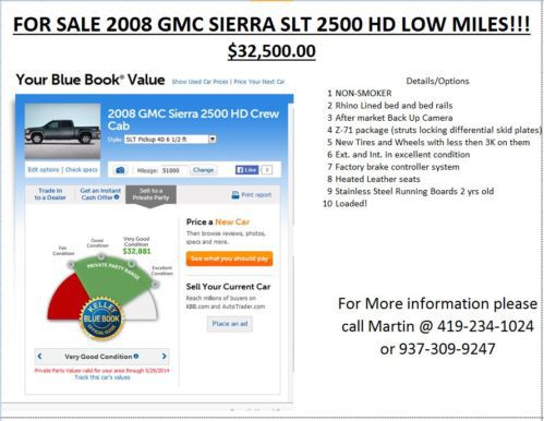 Condition of the truck is very good if not excellent garage kept since I have owned it only a few stone chips. Won't find to many this nice. Please pictures for more details. Thanks for Looking! On Jul-07-14 at 13:11:56 PDT, seller added the following information: The truck is forsale locally as well for $32,000 so auction can be ended at any time thanks.