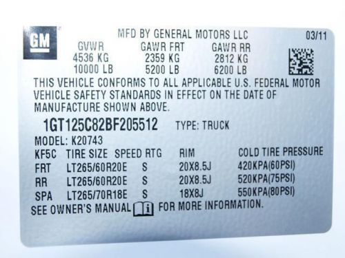 VIN (Vehicle Identification Number): 1GT125C82BF205512