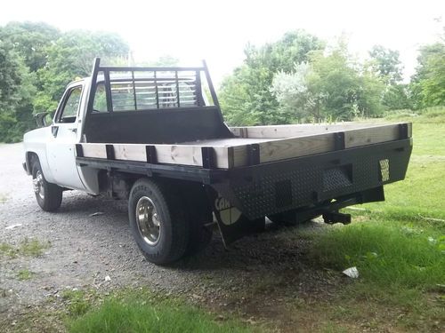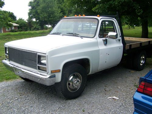 Good looking and strong running 1989 GMC 1 Ton flatbed. Fuel injected 350, 4 speed with granny low. Nice body, could use paint later on down the road. Nice built bed. Has fifth wheel hitch. Inside is in almost perfect cond. Has cd player. Good rear tires with new front tires. Great brakes and is also hooked up for trailer brakes. Thanks for looking, The truck is also for sale local. If you have any?s just ask, thanks.