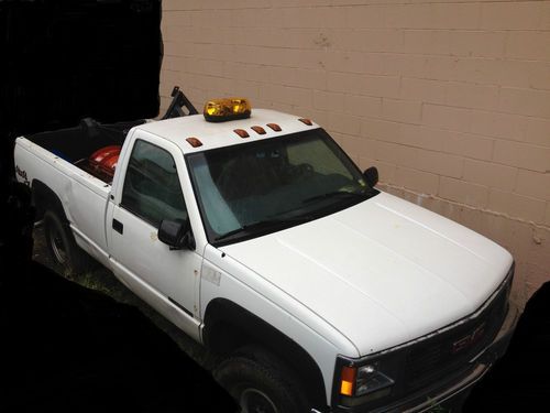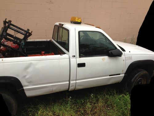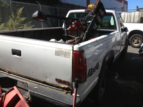 Up for auction I have a 2000 GMC K3500 pickup. It is a 4x4 with a 5.7L vortec engine with 90,933 miles on it. It has a western unimount plow in nice condition. The truck needs work. It is rusty and has dents as it was a plow truck most of its life. It is running with a miss. The fuel pump went on it and I changed it and replaced the gas tank and when I started it, it had the miss. I don't know if it is the wrong pump or the spider injectors that are bad but it ran fine before the pump went and I don't want to mess with it anymore. Like I said the truck needs work. It has a bad brake line and the trans line was repaired with rubber hose so that will need to be replaced too. The frame is rusty but no holes or cracks in it. It has bucket seats and a console from another truck that are grey so the color does not match. For what I am asking its like buying the plow and getting the truck for free. If you were plowing your property you could probably just fix the lines and use it the way it is or fix the miss or take the plow off and part out the truck. The tranny, transfer case and differentials are all good. The drivers side rocker panel is rotted out I have a new one that will be included with the sale. The truck is being sold AS IS, WHERE IS. I can assist in loading if needed as the truck will have to be towed. The truck is listed locally and I reserve the right to end the auction if it sells locally. If you want to see the truck or have any questions contact me through ebay and I will get back to you. $500 deposit through paypal within 24 hours of auction end unless prior arrangements have been made. Thanks for looking.