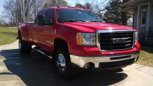 2008 GMC Sierra 3500 DRW 4 wheel Drive. This truck is fire red with tan leather. Smoke free and clean. Has a small scratch on hood, a little damage on front passenger wheel simulator and the passenger power side mirror is not responding. The truck is mechanically sound with absolutely no problems. Only two options available for this year the truck doesn't have is factory navigation and sun roof. Tuck has 98,000 miles Has B&W turnover ball. 70,000 mile Michelin tires with less than 10,000 miles on them. I have put an H&S tuner on the truck with aftermarket exhaust and air box. This was done for economy purposes only. I have title in hand and dealer is responsible for pickup/delivery and all applicable taxes, title work, etc. This is a sharp truck that I would trust to take anywhere. Feel free to contact with any questions. Truck is for sale locally.