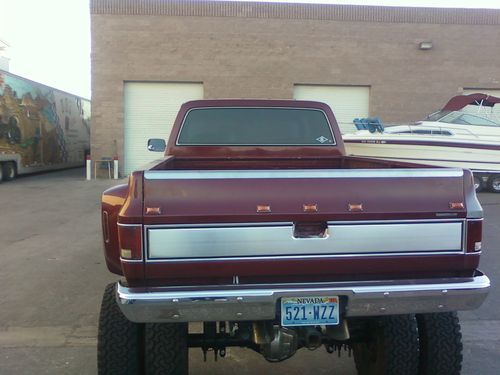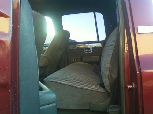 This is a custom ground up 1988 GMC 4x6 Dually 4 door Crew Cab Pickup. It is a great solid truck with a very low mileage (less than 50k) 454 V-8 motor and automatic transmission. It has been lifted 19 inches to accommodate up to 50 inch tires. Currently has 36 inch tires all around it. It was built professionally by Monster Truck Racer / Builder Scott Anderson. Also the trucks has new paint and total interior redone. The interior is all New and Custom. Power windows, pwr door locks tilt wheel cruise,Dual gas tanks, Full size bed, custom dual exhaust, A/C Heat, Dual electric engine fans, HID lights, Billet Grill and interior accessories, New am fm cd stereo with amps and new speakers. The truck runs and Drives great down the highway doing 55 or 90 does not matter (stable at all speeds). 4 wheel drive does work but currently I have the front drive shaft out sitting in the bed of truck. This is a turn key truck, not an extensive project. You can put the wheels and tires of your chose on it or leave it as it is now. I actually drove this truck back and forth 21 miles to and from work for 67 days without any issues this past winter. I have over $20,000 invested in this custom build and the person that wins this auction will be way ahead of the game. I have this truck listed here locally so I reserve the right to withdraw it from the ebay auction at anytime without recourse or notice. Thank you for looking and good luck bidding.
