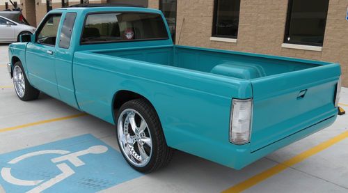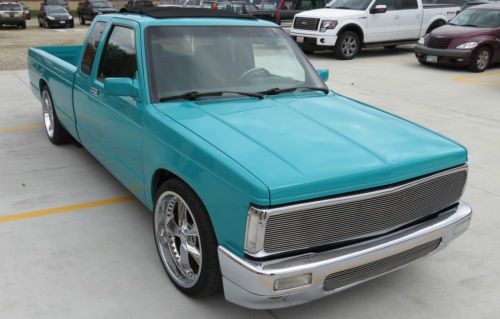 The truck listed for sale is a 1992 GMC Sonoma with numerous custom upgrades to the exterior and interior of the truck. This is a turn-key lowered mini-truck that has been equipped with air ride suspension, aftermarket radio and sound system, and more. Truck is in great running condition and has been well maintained. All the upgrades have been listed below and can be seen in the photos. Feel free to contact with any questions. Details about the Truck - V6 Engine with 5 speed manual transmission - 2-door extended cab - GMC Sonoma full size bed with extended frame 18" (very rare, did not come from the factory this way) Upgrades - Air ride suspension - 20" Chip Foose chrome wheels - Phantom grille - HID headlights - All LED interior lighting - Custom paint job - Ragtop Sunroof - Precision Power subs and amps - Aftermarket head unit (iPhone/iPod plug in, bluetooth, and jump drive capable) that plays videos - Equipped with Optima battery rat