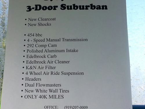 Options: Edelbrock air intake, K&N filter, Edelbrock Carb, Aluminum Intake, Headers, Flowmaster Exhaust, Aluminum Valve Covers, Clear Coat, 292 Comp Cam