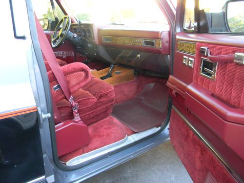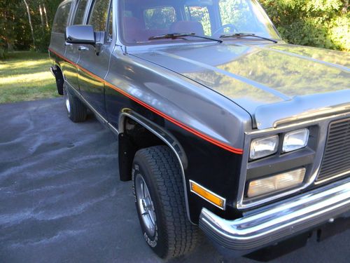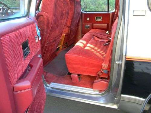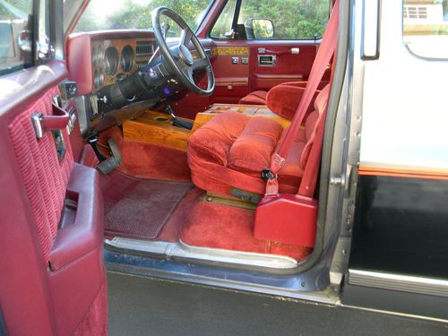 This is a Beautiful 1990 Suburban with the Classic Two-Tone Black and Silver Original Paint scheme with Red pin stripping and only 79253 low miles on it. Doctor purchased new in 1990 and sold to his hunting buddy in 1993. This Suburban has had the Waldoch Conversion Flexsteel seats added along with the Waldoch Wood Center Counsel and wood trim.The Drivers seat is very comfortable. The car runs ,shifts and drives perfect and has New Tires and Battery. No disappointments here. Enjoy a Classic Suburban with the dependable 4 Wheel Drive . This Vehicle is equipped with power side mirrors (work perfect) power windows,power door locks and power front seats.( Both Drivers and Passenger are power) With only 79253 miles this truck has a lot of life left in it. Recently had complete tune up which included plugs,filters ,serpentine belt and water pump. There are No leaks or drips. ( Bottom of engine and transmission are dry and no anti- freeze drips or leaks)You can still see the painted weld seals along the bottom of the sheet metal.This truck was Ziebart protected underneath and also had the optional Ziebart paint protection applied.The headliner is perfect ( Nice and tight with no sagging ) This truck has never been in an accident and have the Carfax that goes with truck.Has normal little door dings but is in amazing condition.