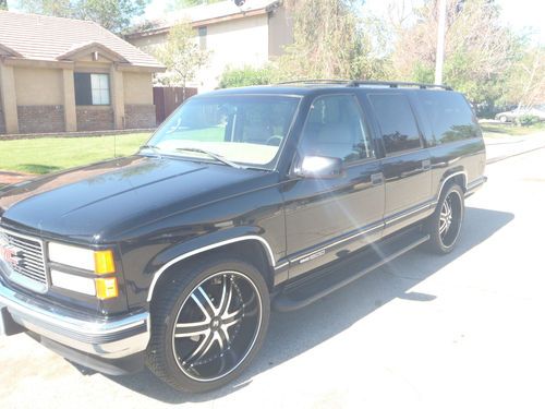 1999 GMC Suburban "Black",Tan Leather,New 24" Rims/Tires,Flow Master & Music. Great Condition. Interior and Exterior like new. II Crave Alloy Rims in great condition. Working A/C. Great Music System including 720 Watt Kenwood Amp, Boston G2 10" Woofer. Extremely low mileage, 107,350. Very well maintained vehicle. Registration good till 01/24/2014.
